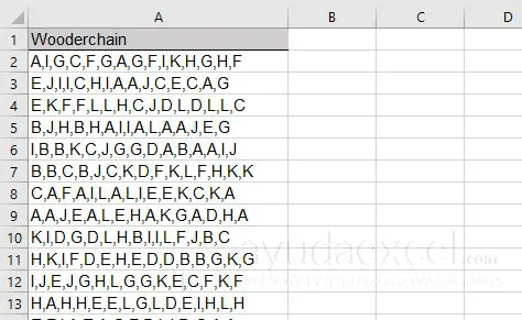 =SUSTITUIR(«A,I,G,C,F,G,A,G,F,I,K,H,G,H,F»;»,»;»</a><a>»)
