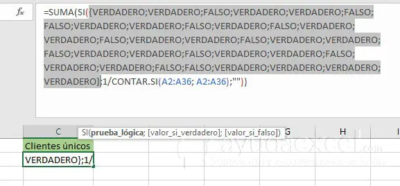 El resultado de la fórmula será el número de clientes únicos de la semana.