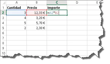 Si después de escribir la fórmula anterior, utilizas la herramienta Autorrellenar para calcular el resto de importes, verás que en cada celda se copian referencias adaptadas a los operadores adecuados.