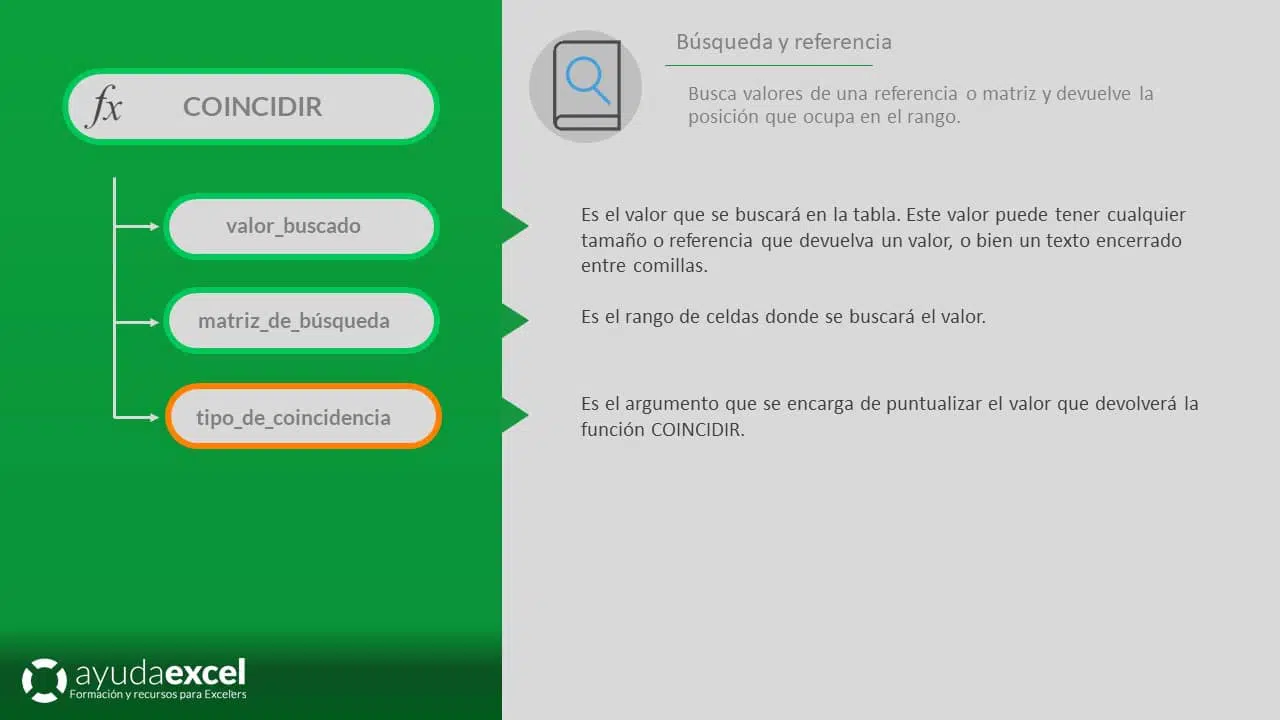 - tipo_de_coincidencia: Opcional. Es el argumento que se encarga de puntualizar el valor que devolverá la función COINCIDIR.