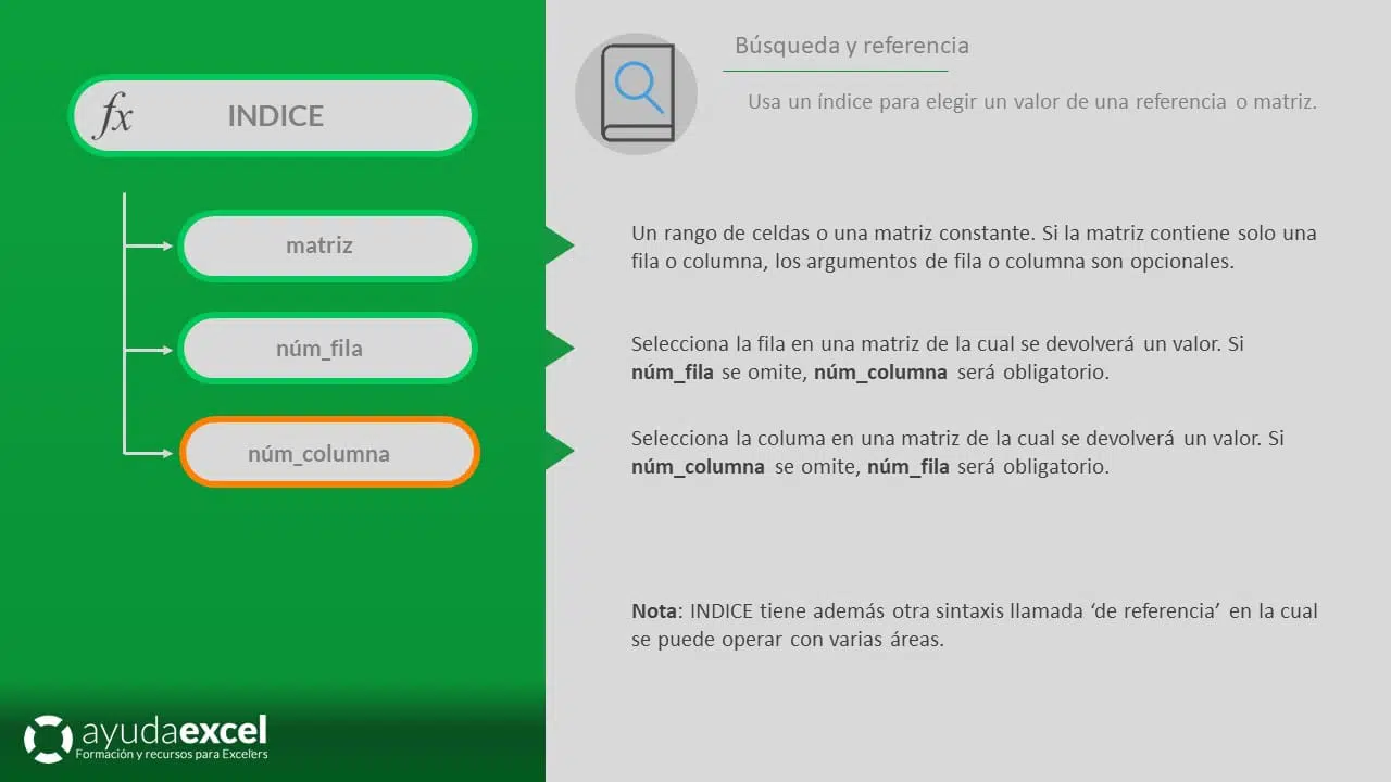 - núm_columna: (Opcional) Número de columna dentro de la matriz desde donde se obtendrá el valor. Si se omite, se asume 1.