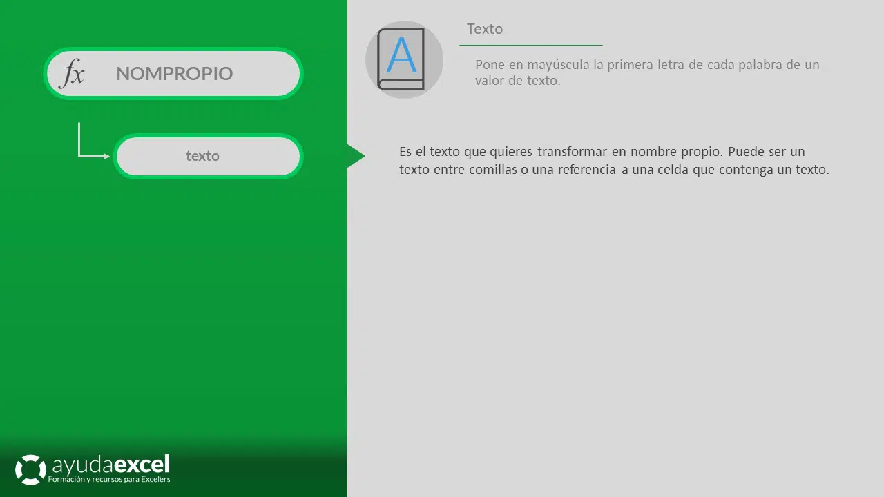 - texto: La cadena de texto o referencia a una celda que contiene el texto que deseas convertir a formato de nombre propio.