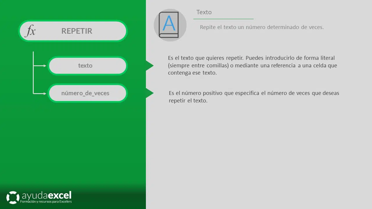 La función REPETIR genera una nueva cadena de texto repitiendo una cadena específica un número determinado de veces. Es especialmente útil para crear patrones, rellenar celdas con caracteres repetidos, generar secuencias o automatizar la creación de textos repetitivos. REPETIR facilita tareas como: