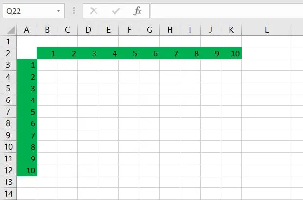 Una definición ‘de diccionario’ podría decir que se trata de una matriz redimensionable sobre la que se realizan cálculos y automáticamente devuelve valores en varias celdas basándose en una única fórmula introducida en una celda. Déjame que te lo explique con un ejemplo. Imagina que quieres crear una ‘tabla de multiplicar’. Tienes los operandos dispuestos de la siguiente manera:
