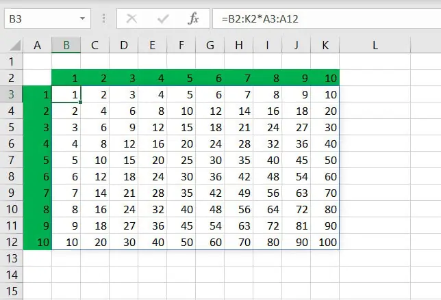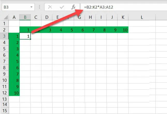 Ahora mira qué ocurre cuando se introduce la misma fórmula en Excel 365. Solo tienes que escribirla en la celda B3 (en el ejemplo), presionar Intro y… voilá! Ya tienes toda la tabla rellena.