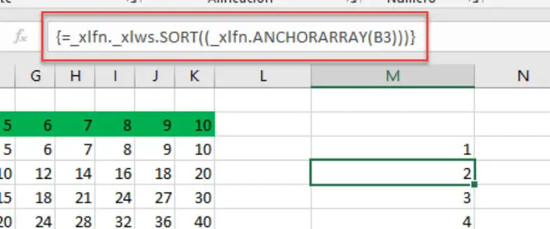 Como he comentado más arriba un rango derramado es el rango de celdas que contiene los valores devueltos por una fórmula de matriz dinámica.